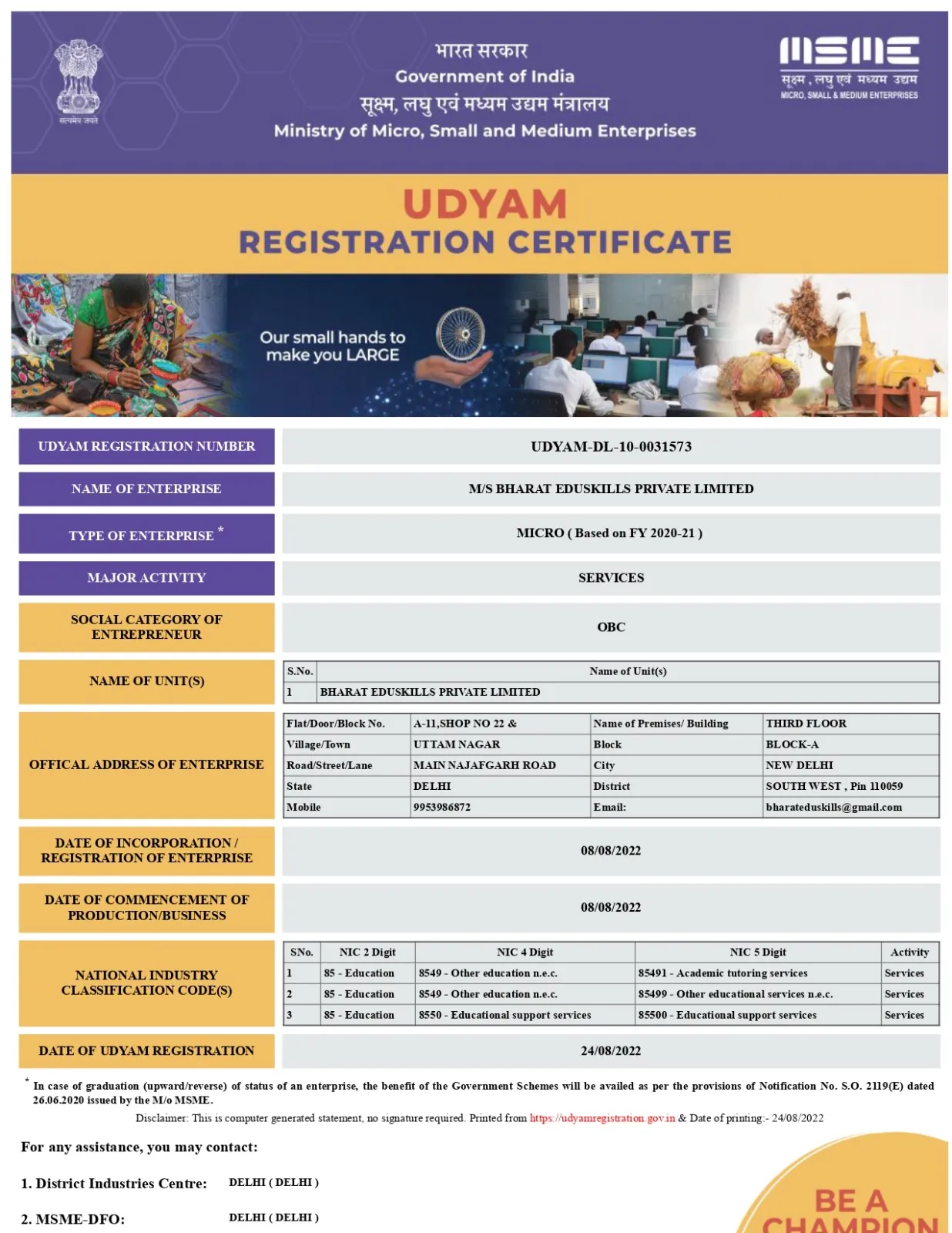 At Bharat Eduskills Private Limited, we are committed to building a future where knowledge and skills empower every learner. As a premier online learning platform, our mission is to bridge the gap between traditional education and industry requirements by providing affordable, flexible, and career-focused courses. We believe education must be practical, accessible, and designed for real-world applications. Our expert-driven programs cover professional skills, technology, finance, compliance, and personal development, ensuring learners are job-ready and future-ready. Each course is designed with interactive learning, case studies, and practical assignments, culminating in a recognized certificate upon successful completion. At Bharat Eduskills, we value quality, innovation, and learner success. From students to professionals, our platform supports every stage of growth. We thank you for trusting us as your partner in learning and invite you to join us in creating a skilled and empowered India.